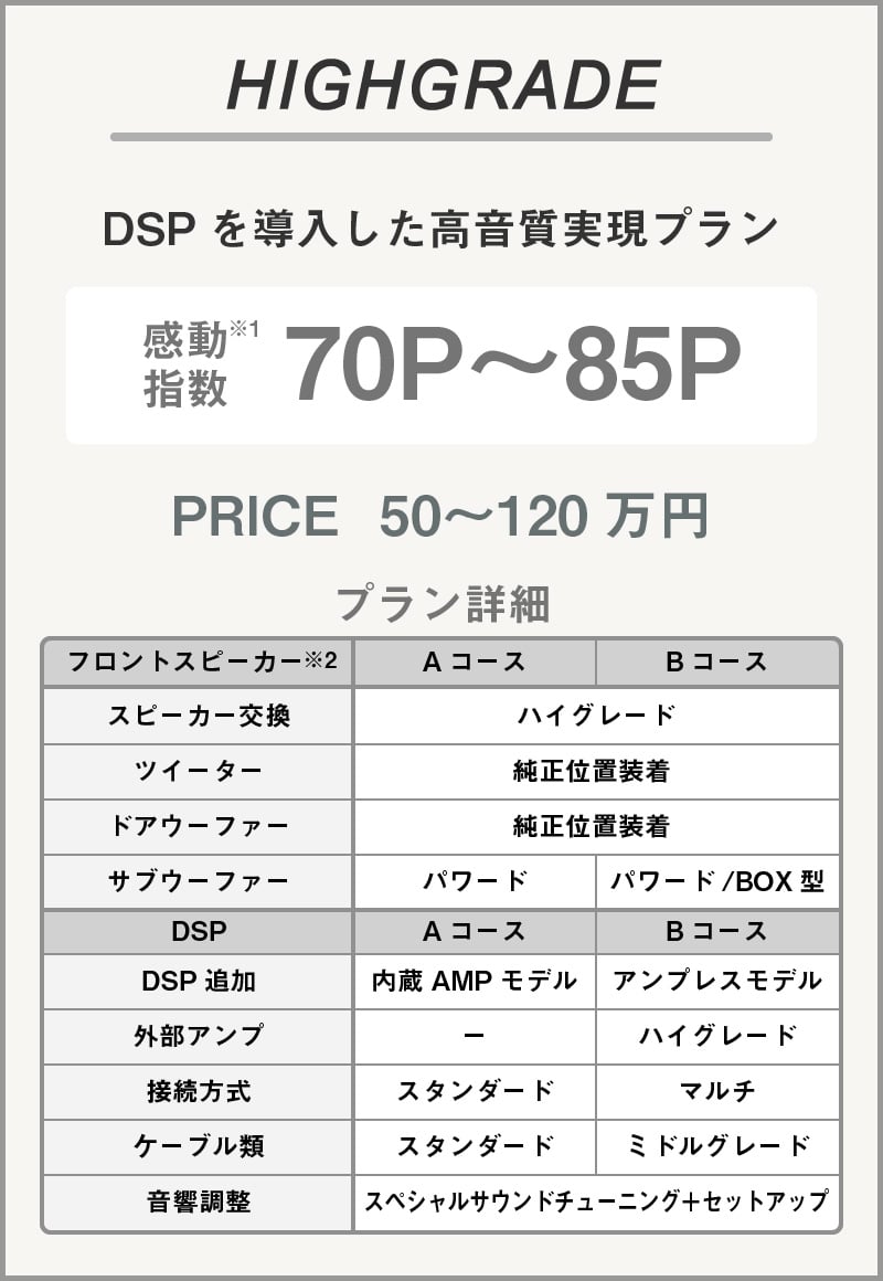 ハイグレードゾーンでは飽き足らず、さらにホームオーディオのような高精細サウンドをお求めの方へのプラン。