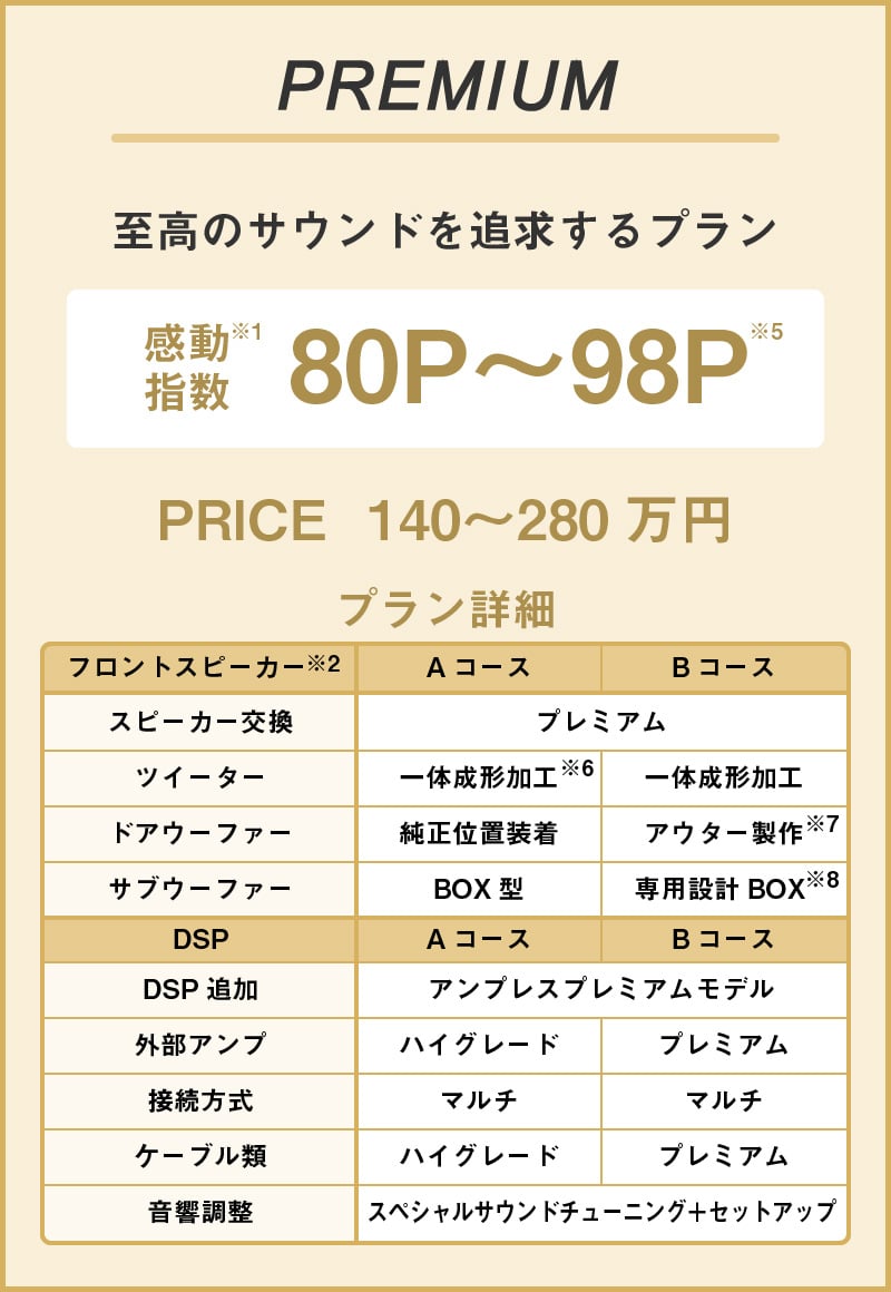 カーオーディオを感動のサウンドに仕上げるための指標として、当店が独自に考案したものです。