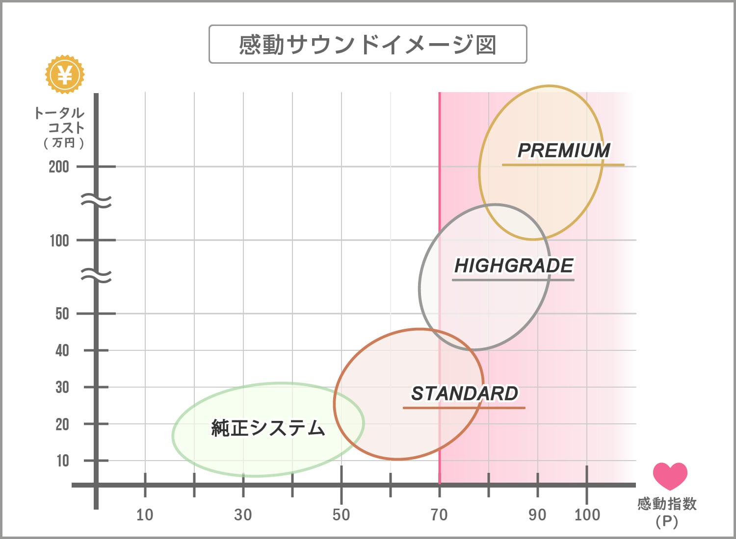 ※1 感動指数とは当店独自の評価ポイントです。感動サウンドイメージ図をご覧ください。