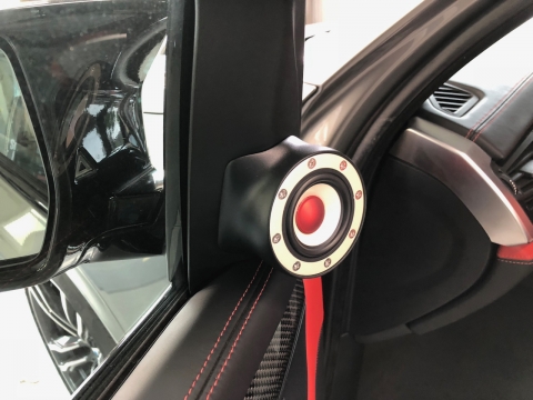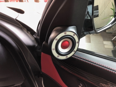このD52Nはフルレンジというだけあってこれだけでもツイーターが不要な設計になっているのですが、今回オーナー様のご希望もあり、ミラー裏へUNIT-N52Nを一体型加工で取り付けてあります。