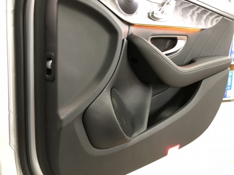 フロント2wayシステムのみで完結するように、かつスピーカーの持てる性能を全て引き出し切り超重低音まで淀みなく再生できるように、ドアに専用のエンクロージャーを組み込むワンオフ製作を行いました。