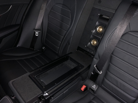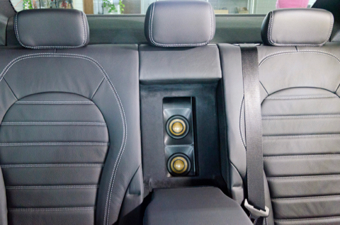 見た目はもちろん音響をスポイルする事が無いように製作を進め、シートバックをフラットにしても違和感ないように仕上げることが出来ました。