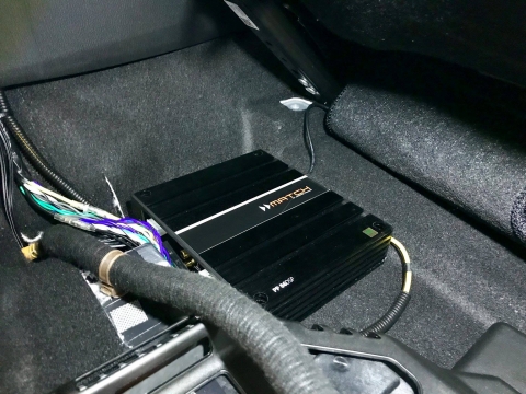 フロントスピーカーをTBF-1877Biに交換し、運転席下にカロッツェリアのサブウーファー TS-WH1000Aを設置、更に、助手席下にMATCHのプロセッサーアンプ PP-86DSPを導入しました。