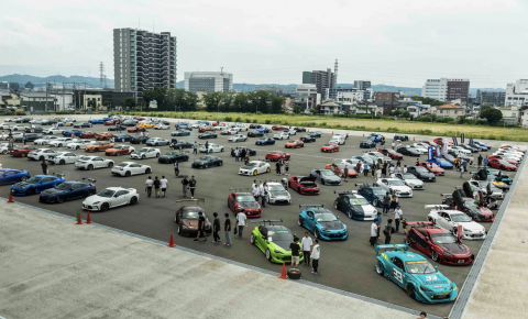 AutoBlast公式デモカーのBRZとXaCar編集部の黄色のTOYOTA86が並びます。