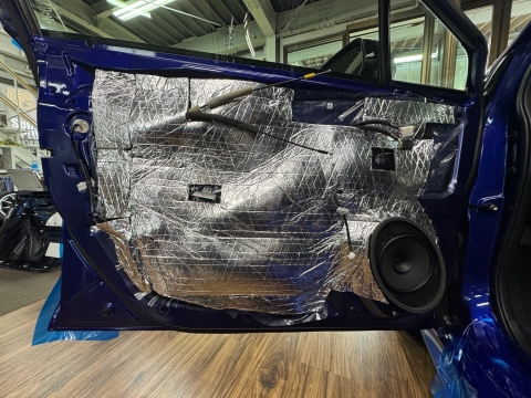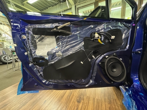 フロントドアの遮音施工は車の全体的なノイズレベルの低減が期待できますので当店でもお勧めの内容となっております。