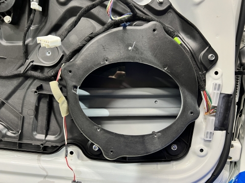 スピーカーをSonicカジュアルラインに交換する際に、開口部が小さいため取り付け部分をカットする必要がありましたので少し加工しました。