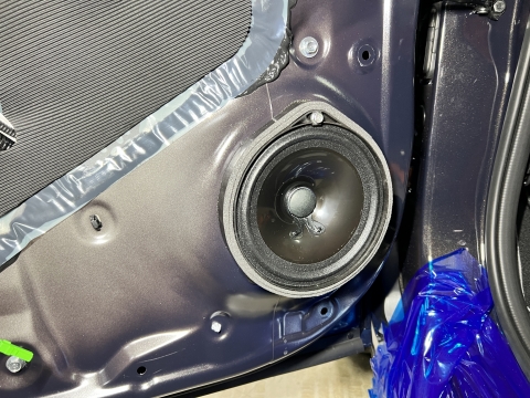 新型車ということもありしっかりと打ち合わせを行い、より高音質に持って行くためにフロントマルチアンプ接続で取り付けました。