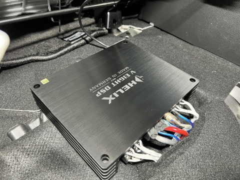 プロセッサーアンプはHELIX V-EIGHT DSP MK2、サブウーファーはお客様がお持ちであったKICKERのBOXサブウーファーと、パワーアンプにはcarrozzeriaGM-D8100をインストールさせていただきました。