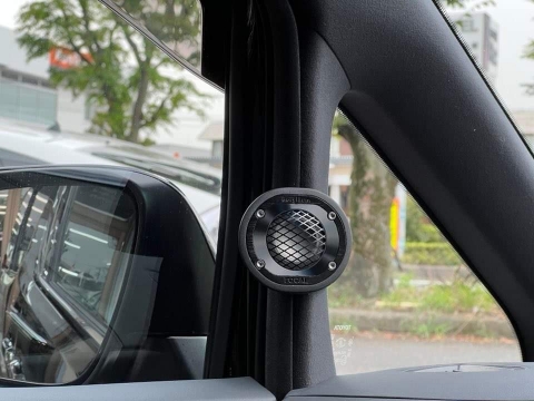 ツィーターマウントの角度も運転席へバッチリ狙うためにワンオフで製作させていただきました。