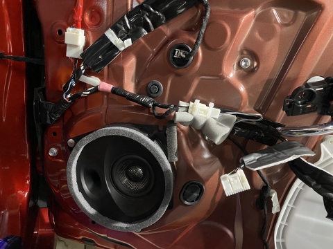 純正のスピーカーケーブルを流用したスタンダード接続でしたが、きっちりと感動サウンドに仕上がり、WBさんにもとても喜んでいただけました。