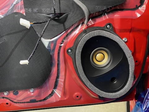 まだソニックデザインからは新型レヴォーグ専用は出ていませんが、事前におクルマを確認させていただいて既存のオーバルタイプスピーカーが適合することが分かりましたので、早速取り付けをさせていただきました。