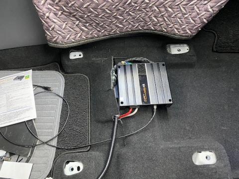 プロセッサーアンプは助手席下へ、サブウーファーは運転席下へ設置します。