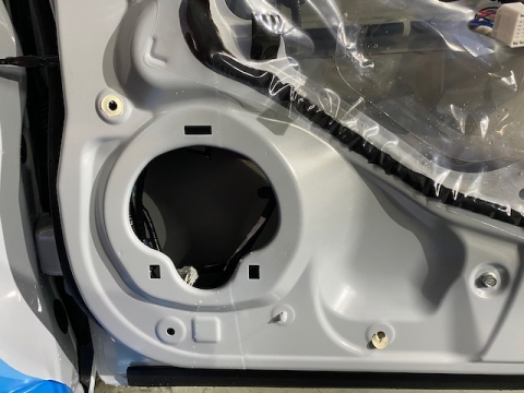 ホンダ車はスピーカーホールがもともと小さいため、鉄板をカットして拡張する必要があります。