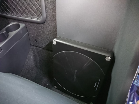さらに、低音を補うためにもcarrozzeriaの薄型サブウーファーを装着。