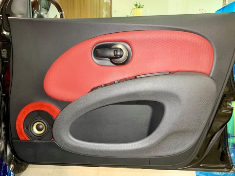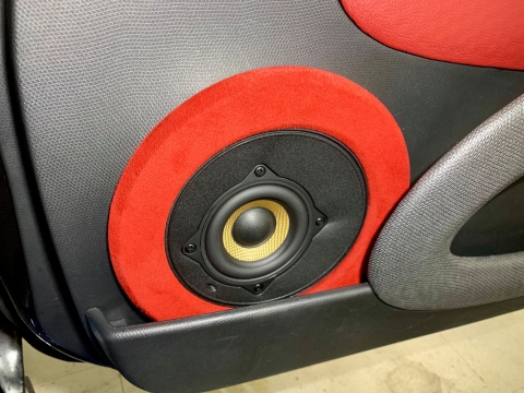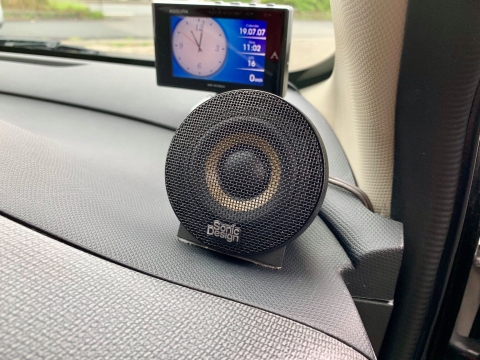 ツイーターは簡易的にダッシュボードへ固定する形にしましたが、ミッドウーファーはアウターバッフルにてシンプル且つかっこよく仕上げました。