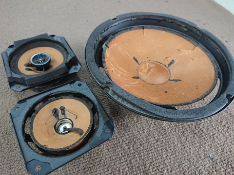 スピーカーのコーン紙がボロボロになっていて、音がまともに出ていない状態でしたので、運転しながら音楽が聴けるようになってよかったと喜んでいただけました。