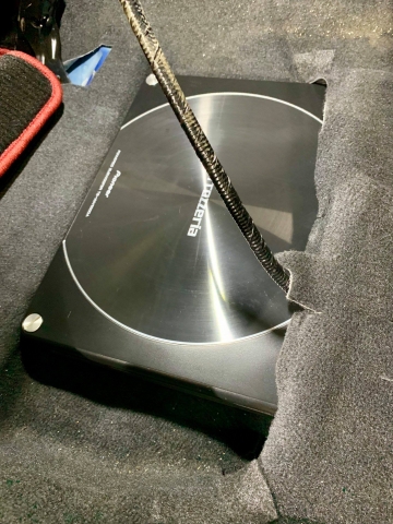 当初は後部座席の足元に移設する予定でしたが、多くのスバル車の場合、こちらのサブウーファーでしたらシート下に埋め込むような形で設置することが可能ですので、そのように変更しました。